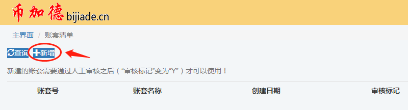 新賬套建立完成后,電話或微信告訴幣加德客服人員,審核通過后,再按照上面的步驟登錄 ERP Web 端,可以看到“審核標記”變為 Y,如下圖。