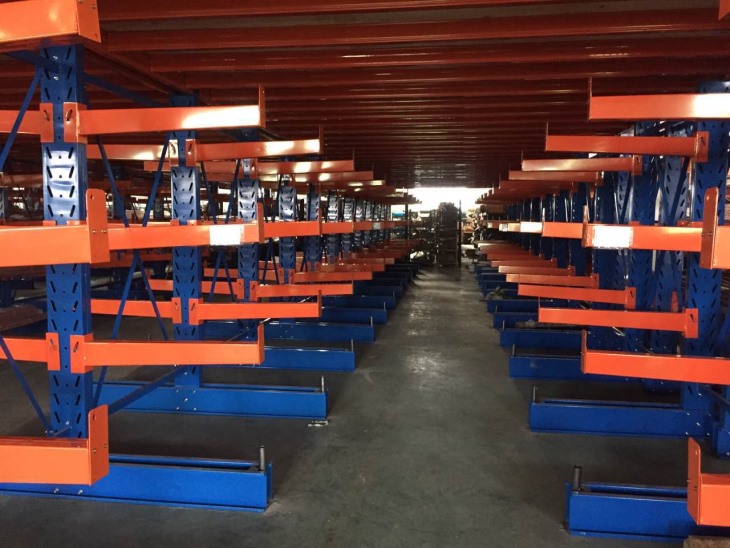 懸臂貨架是由連接拉桿、交叉拉桿、懸臂和立柱等材料組成的,立柱多采用鋼或冷軋型鋼,懸臂采用方管、冷軋型鋼,前伸的懸臂可以是單面或雙面,具備結構輕、載重能力好等優(yōu)點。單臂的承重可以達到500公斤,承受到2噸-3噸的重量貨物可以選擇特別加固的立柱結構。