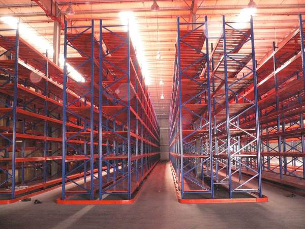 重型貨架中倉儲量達到的最大值的貫通式貨架。貫通式貨架又被叫做通廊式貨架、駛入式貨架等,這是一種密集型的貨架類型。貨物必須遵循先進后出的模式來存取,空間利用率可以達到75%左右,相對于橫梁式貨架,其空間利用率提高了30%以上。進行貨物存取的時候要進入貨架的內部來操作,對于叉車的駕駛技術有一定的要求。不間斷的存儲貨位是貫通式貨架的一大特色。